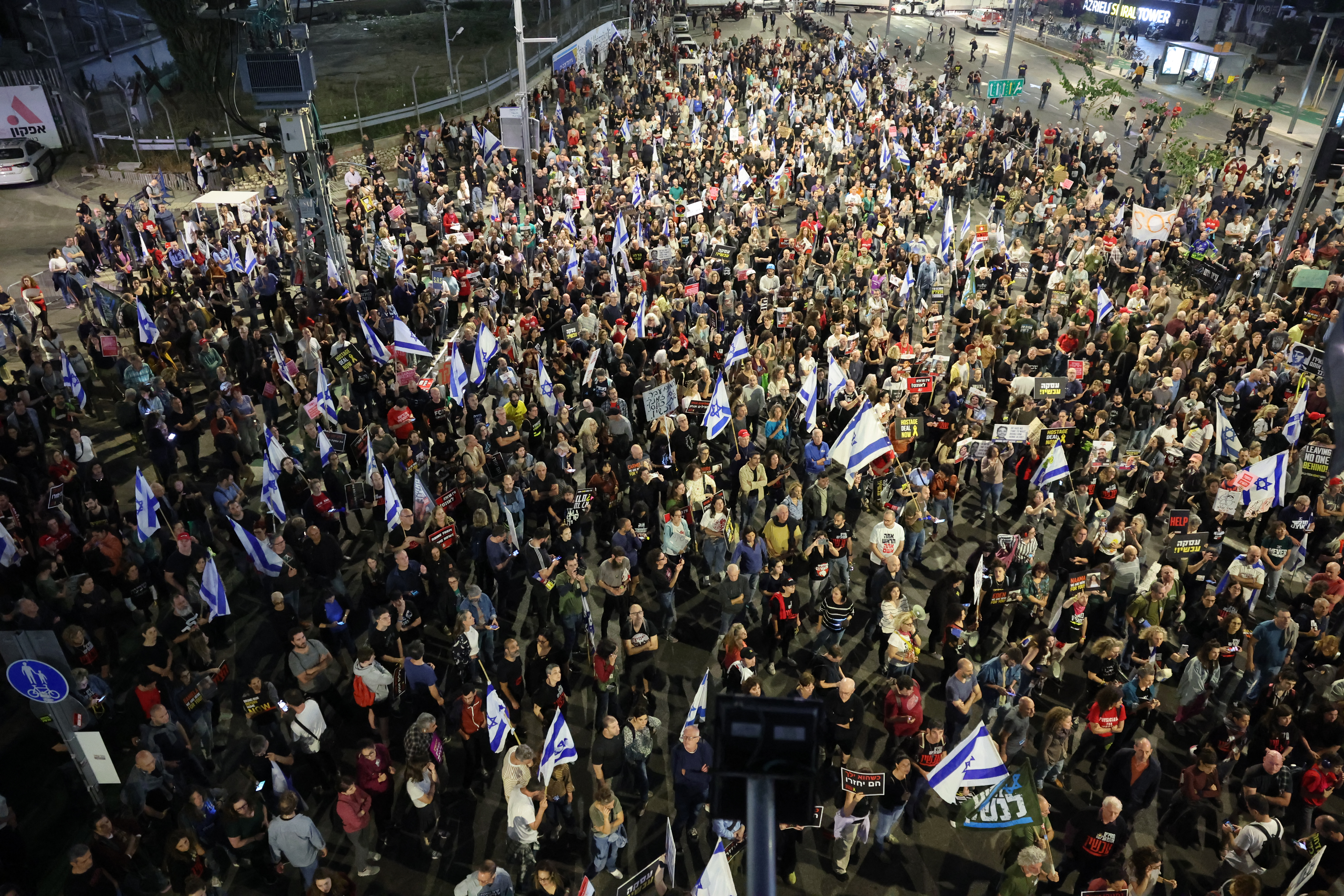يتظاهر الاف المواطنين في ساحة المختطفين في تل أبيب ، مطالبين بابرام صفقة تبادل أسرى في اسرع وقت ، وباستقالة حكومة نتنياهو .