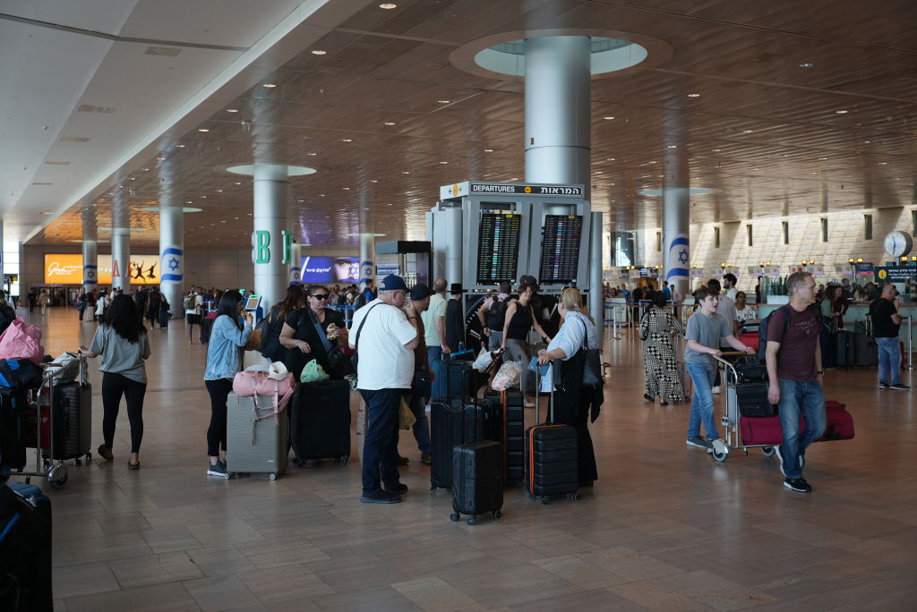 مسافرون في قاعة المغادرين بمطار بن غوريون الدولي - الفيديو للتوضيح فقط