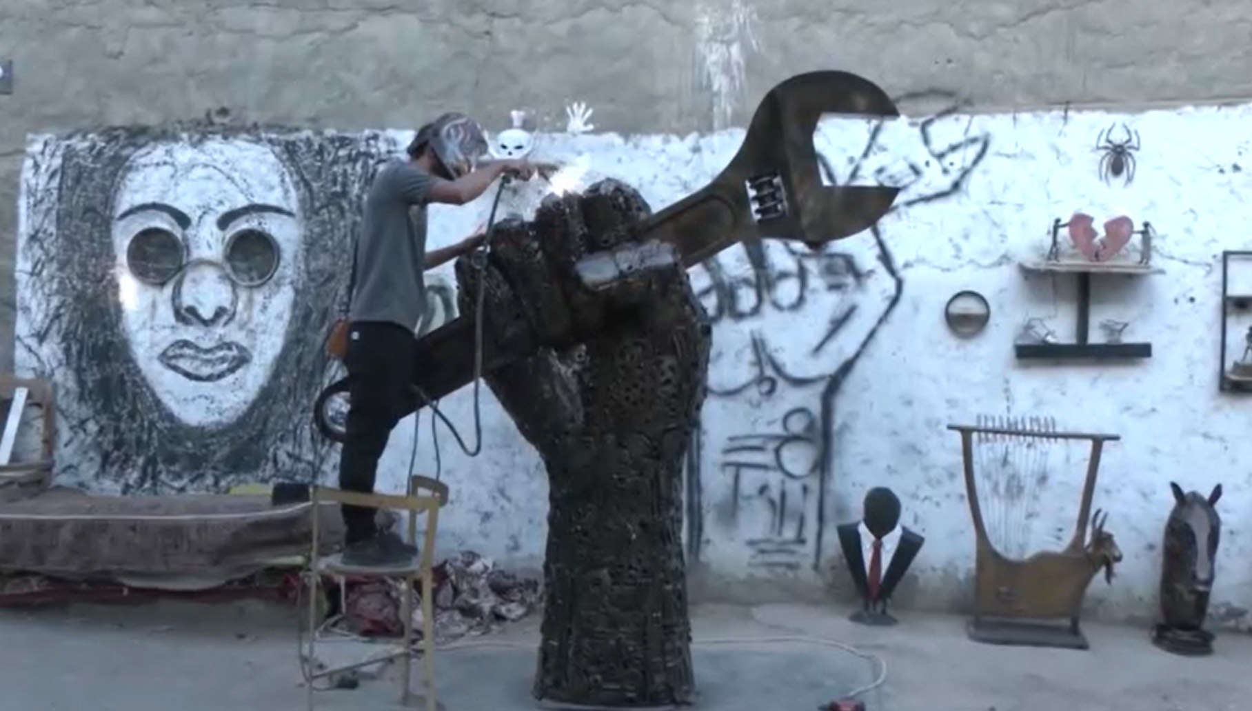 وقال الميكانيكي العراقي وفنان الخردة - حسين داوود: "طبعاً بدايتي كهواية بعدين شوي شوي اكتشفت انه هذا الفن، فن الخردة، به رسالة، فكرته الأساسية حماية البيئة. يعني من مخلفات الحديد اكو من اطارات انا مسويها من مخلفات، تتحول بعدين من مخلفات اللي تحف فنية جميلة."