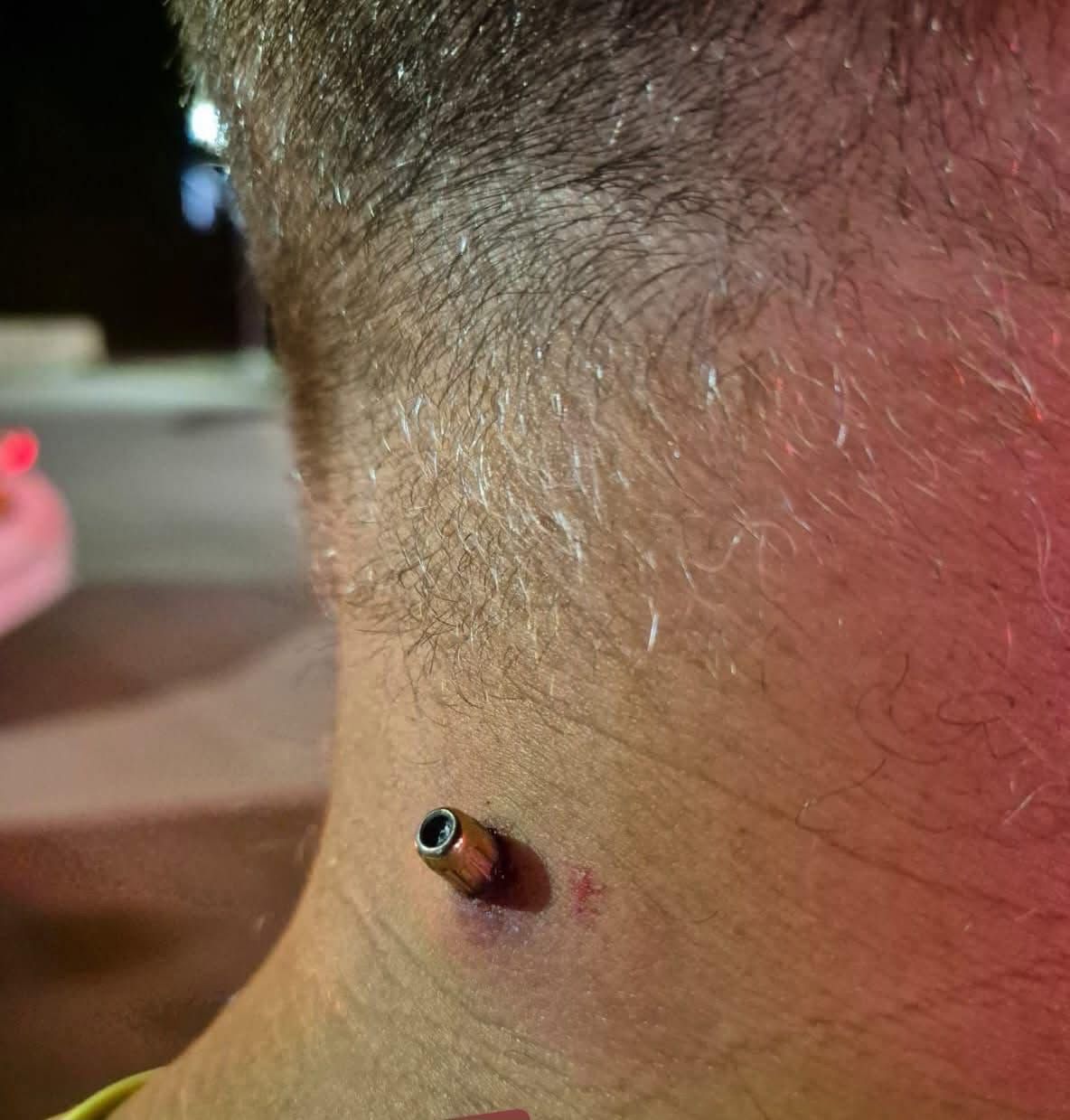 وفي صورة متداولة على وسائل التواصل الاجتماعي، تظهر الرصاصة عالقة في مؤخرة رأس الشخص، لكن تم نقله إلى مستشفى نهاريا، اثر اصابة طفيفة.