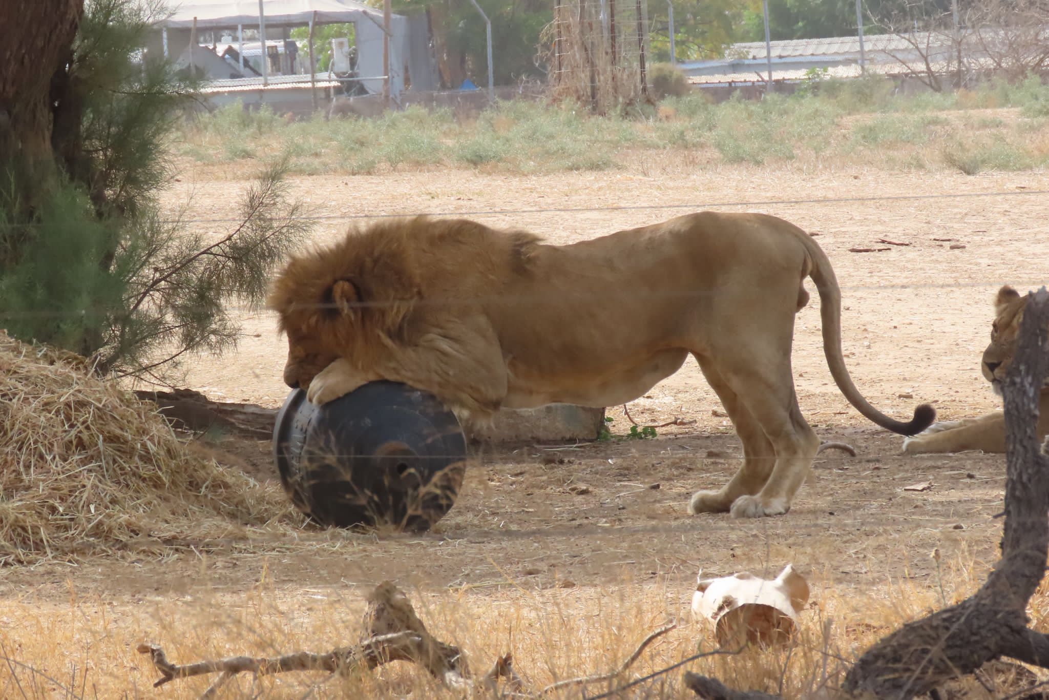 وقالت ادارة الحديقة انه يسعدها استعمال أغراض كانت ستلقى بالنفايات واعادة استخدامها بشكل مختلف، وان مثل هذه الأنشطة تحفز الأسود وتشجعها على التصرف بشكل مشابه لتصرفها في الغابات.