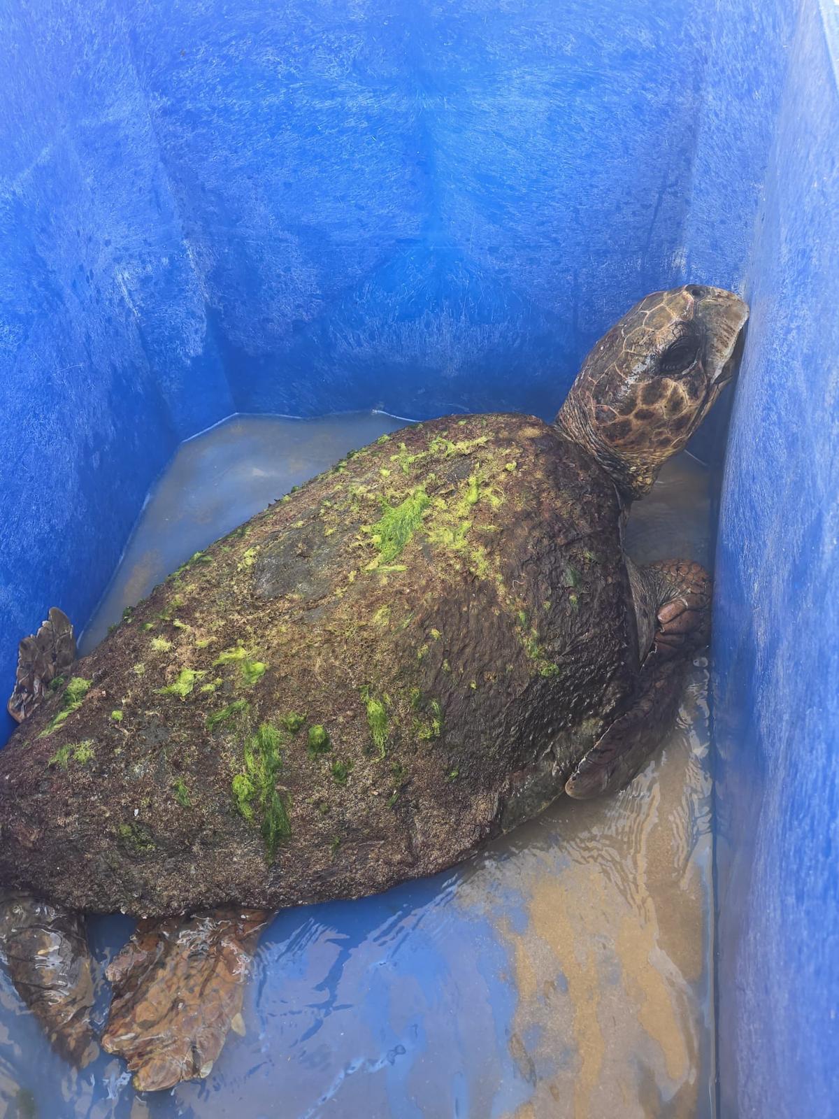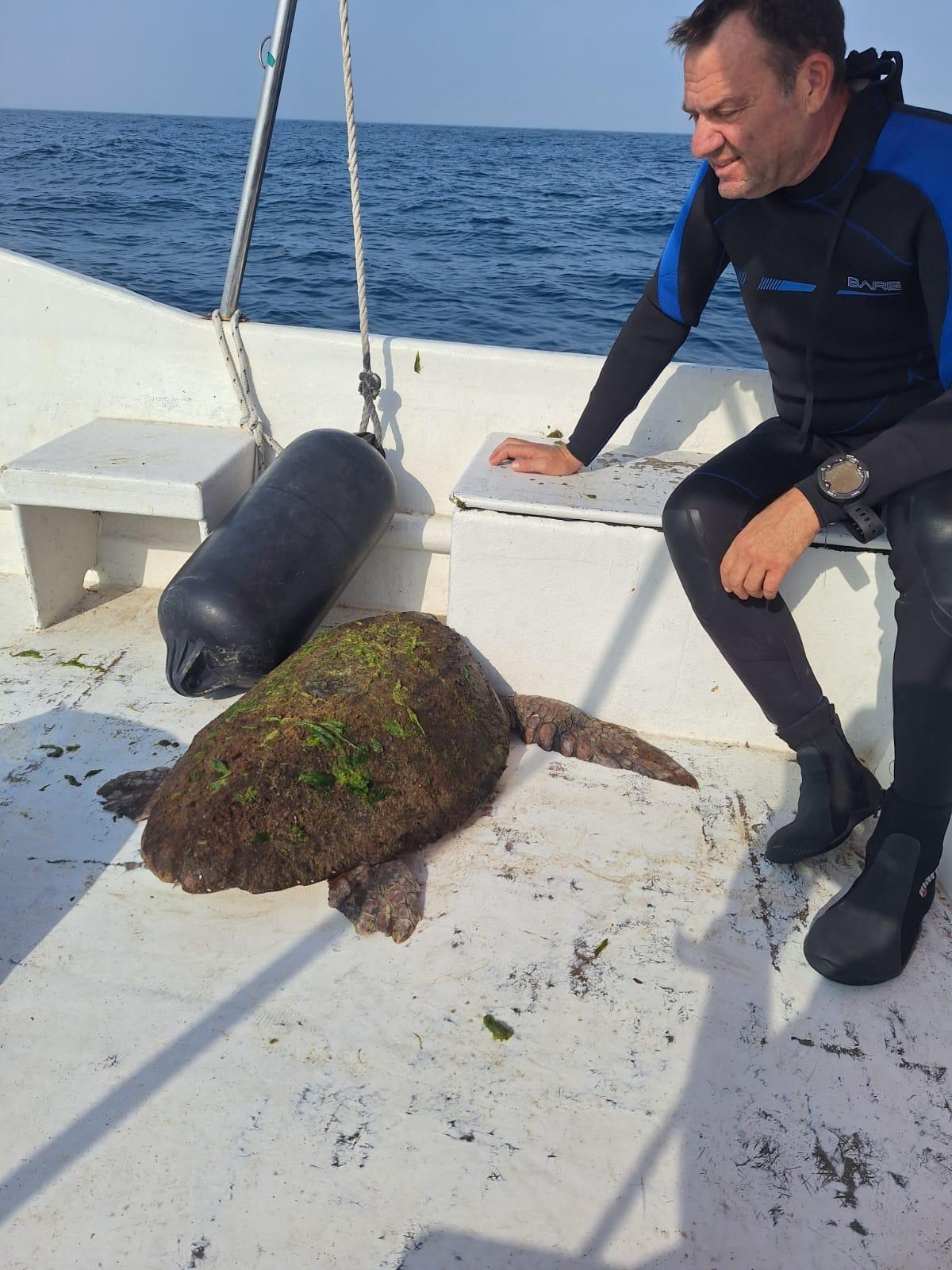 إنقاذ سلحفاة بحرية بنية مبتورة الطرف قبالة شواطئ شفي تسيون