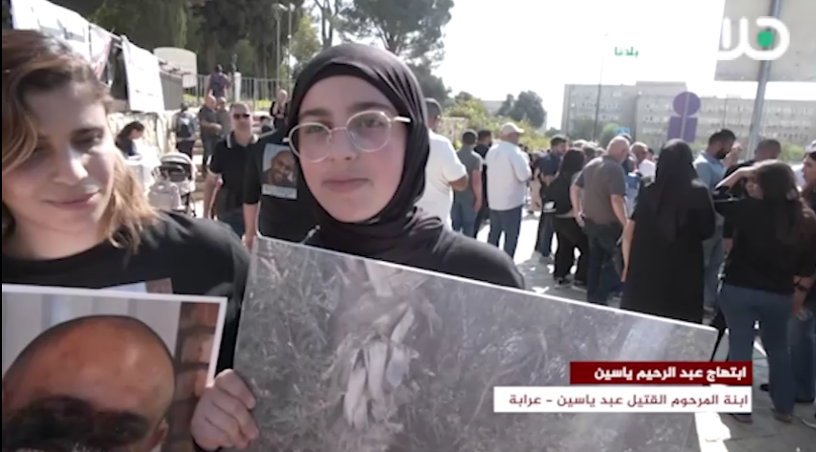 قريبات القتيل عبد الرحيم ياسين من عرابة يسمعن صرختهن ووجعهن في المظاهرة القطرية أمام مكتب رئيس الحكومة