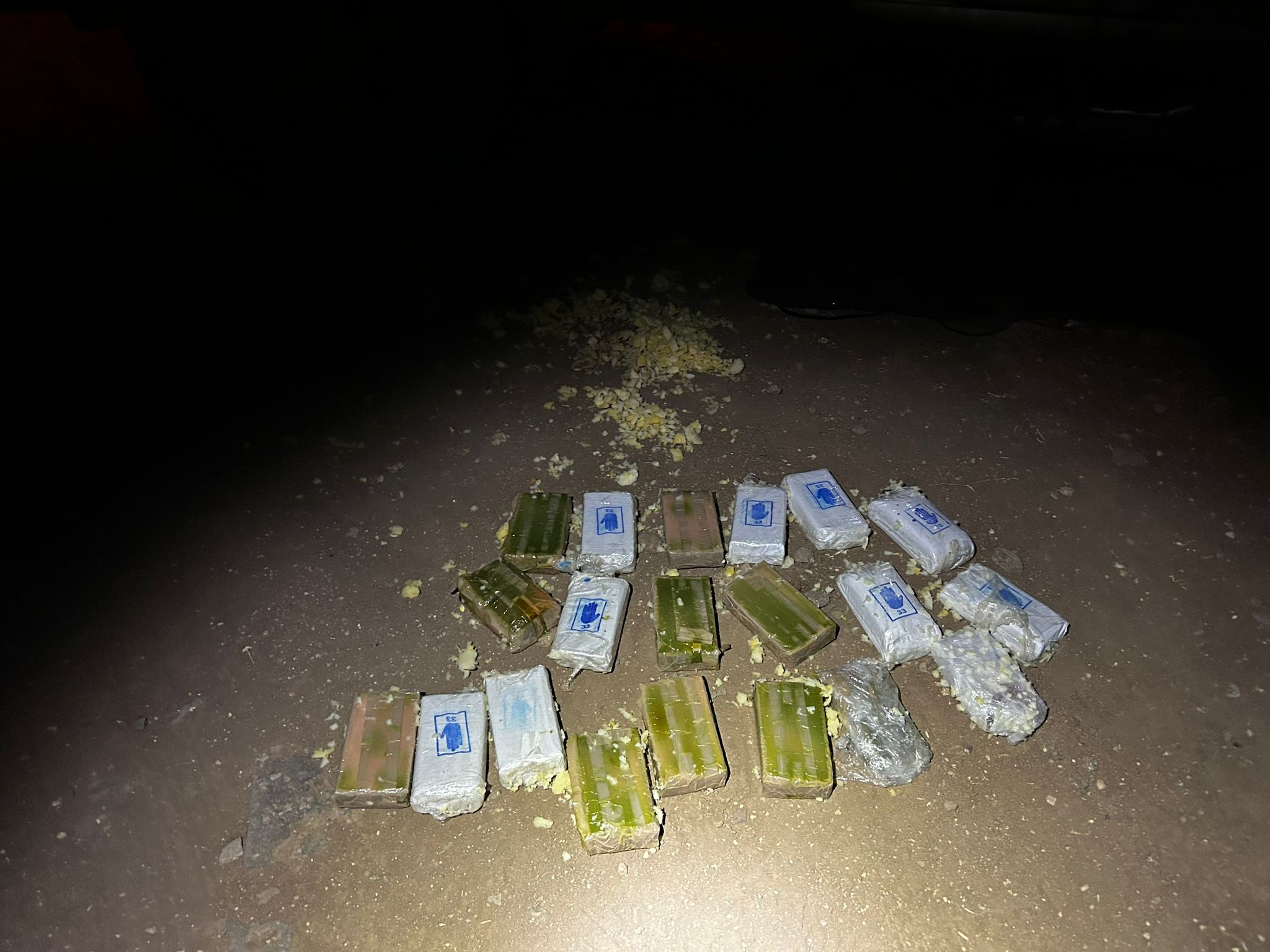 واضاف البيان: " بتاريخ 18.10.2025، وخلال ساعات الليل، نفّذ مقاتلو وحدة "الحدود" التابعة للوحدة المركزية في لواء الشمال بالتعاون مع قوات من الجيش (فرقة 96)، نشاطًا لإحباط عمليات تهريب مخدرات على الحدود الشرقية قرب كيبوتس "حمدياه". خلال النشاط، رصدت القوات طائرة مسيّرة تعبر الحدود من الأردن إلى إسرائيل، وعلى الفور تمّت مداهمة مركبتين كان بداخلهما المشتبهون الأربعة (أعمارهم 21,22, 28 و-30 عامًا)، حيث تمّ العثور على طائرة مسيّرة كبيرة موصولة بكيس يحتوي على 20 رزمة من مخدّر الحشيش بوزن فوق 9.4 كيلو " .