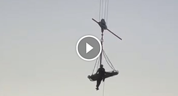 وتم استدعاء طواقم وحدة الإنقاذ الخاصة إلى المكان، حيث عملوا على ارتفاع كبير مستخدمين أنظمة حبال خاصة" .
