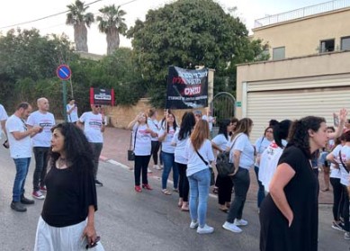 مظاهرة من الارشيف لمعلمين من المجتمعين العربي واليهودي - تصوير المربي عثمان مصاروة