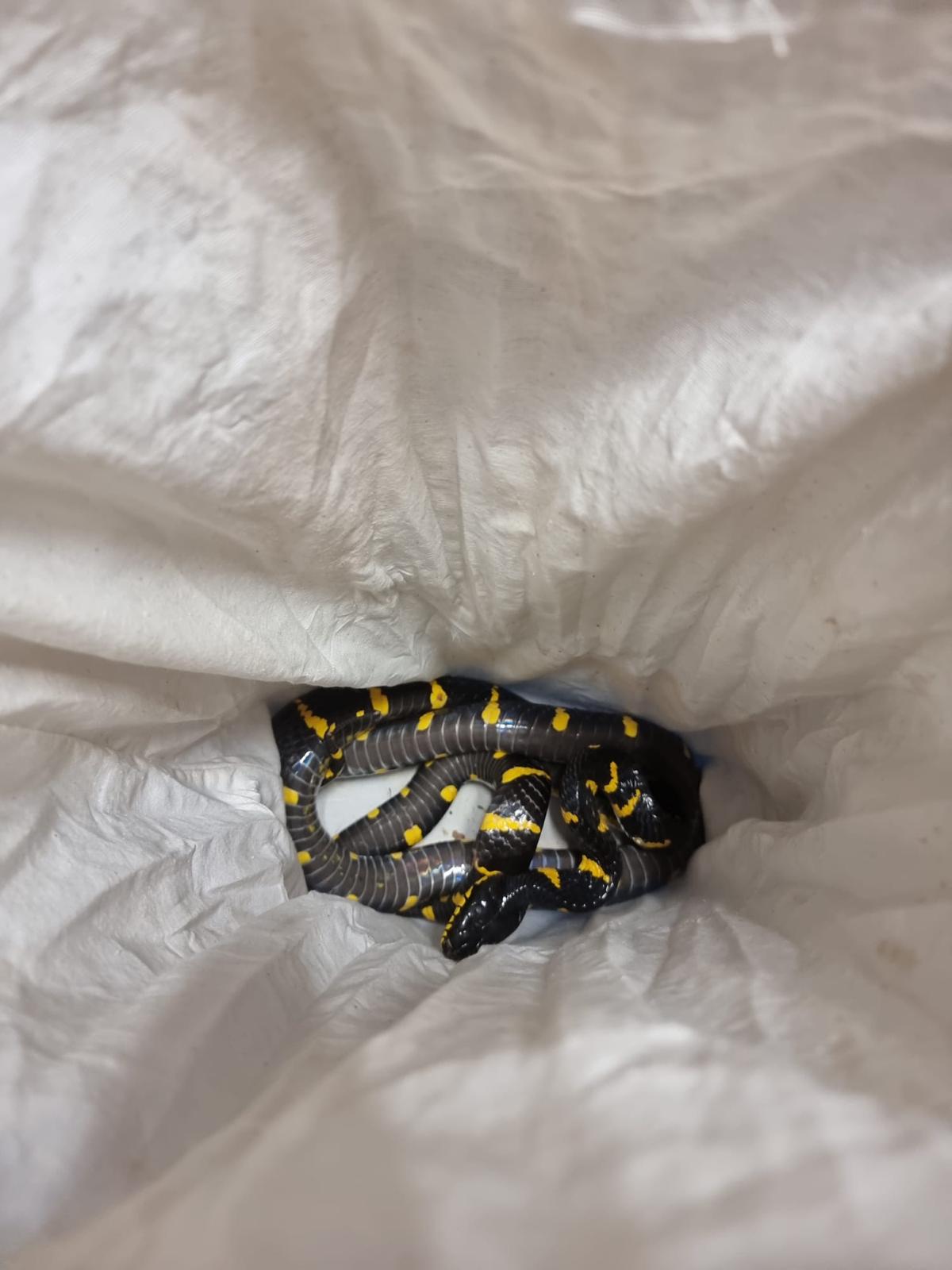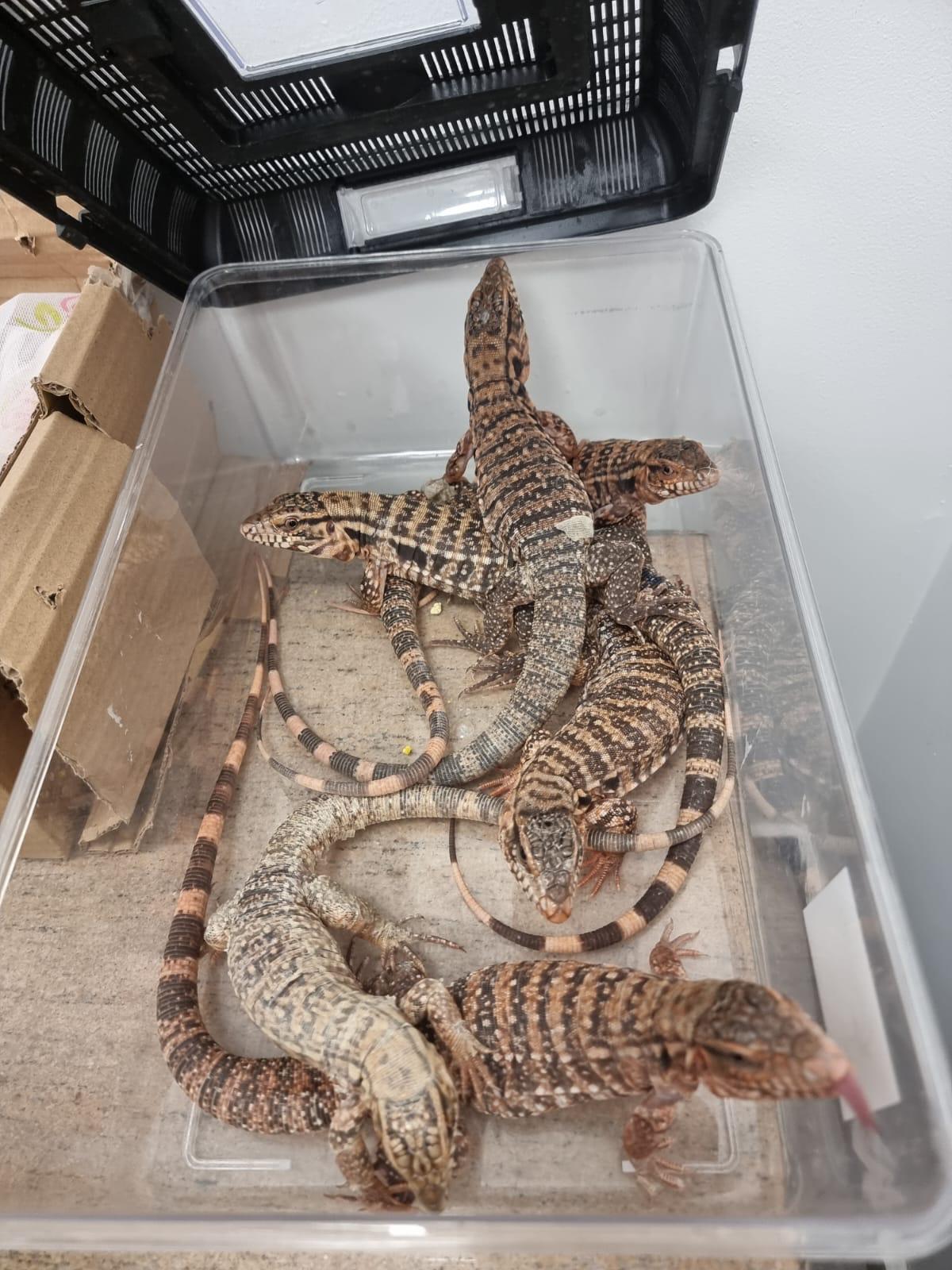 وقد عُثر في حقيبة المشتبه به على مجموعة واسعة من الأنواع، من بينها أنواع من الثعابين والسلاحف والسرطانات والضفادع والسحالي، إلى جانب كائنات برمائية أخرى.