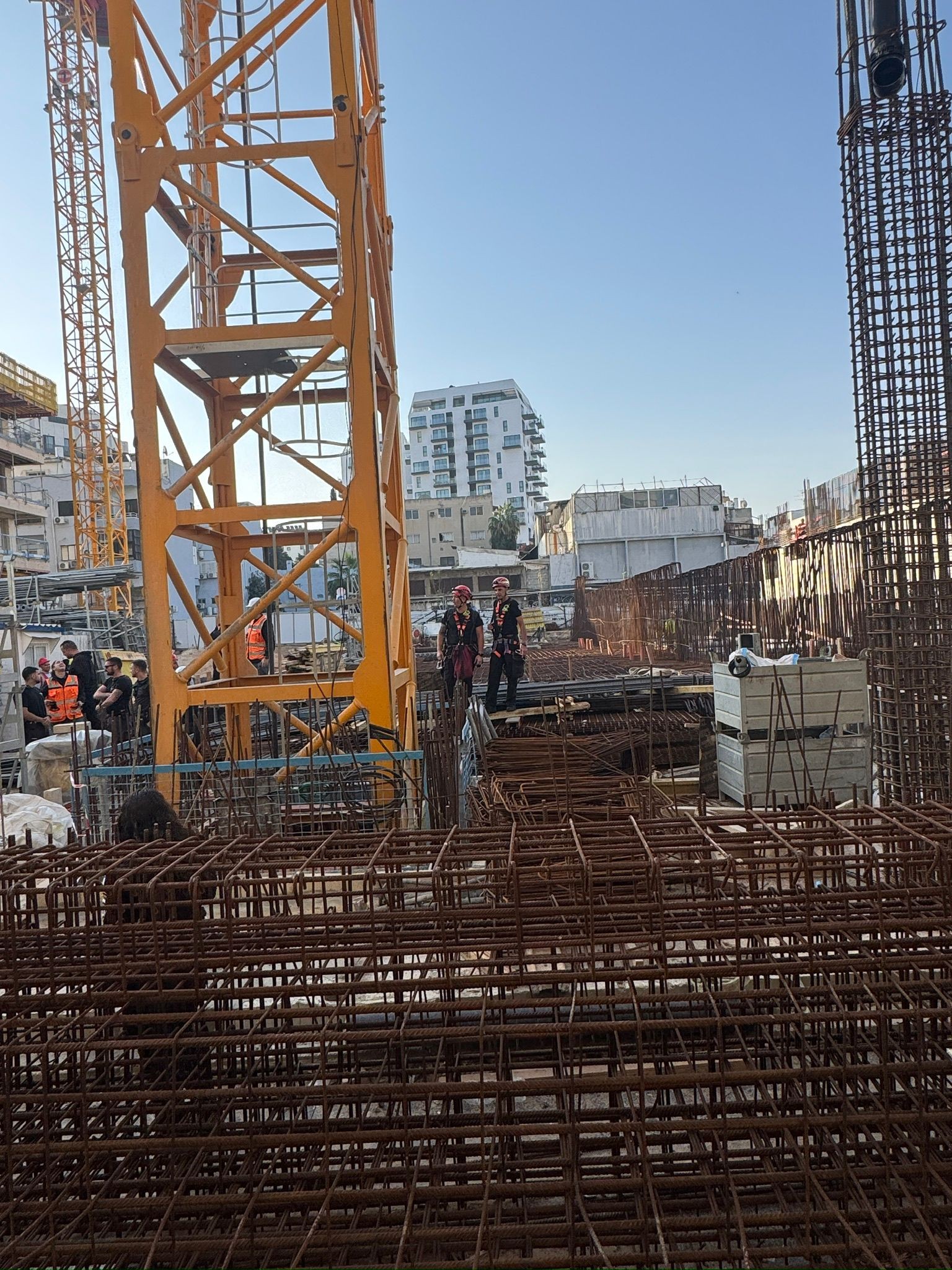 تعمل طواقم خاصة من سلطة الاطفاء والانقاذ على تخليص عامل علق في رافعة بارتفاع 40 مترا في ورشة بناء في مدينة يافا.