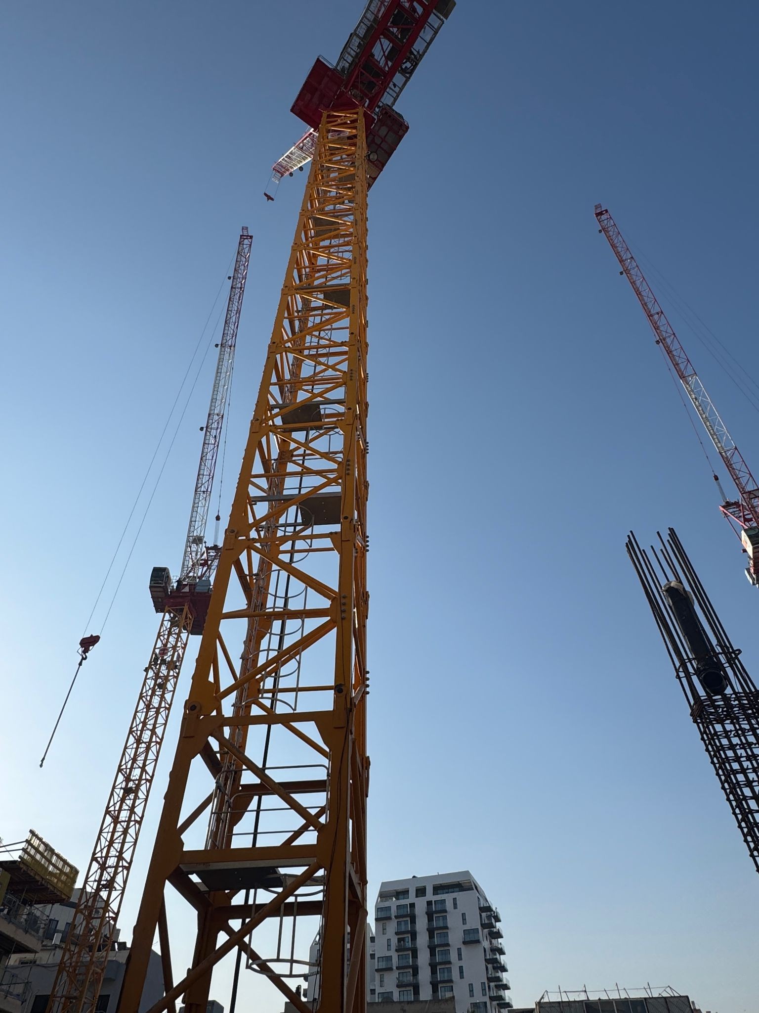 لحظات تحبس الأنفاس: طواقم الإنقاذ تحاول تخليص عامل علق برافعة على ارتفاع 40 مترا في يافا