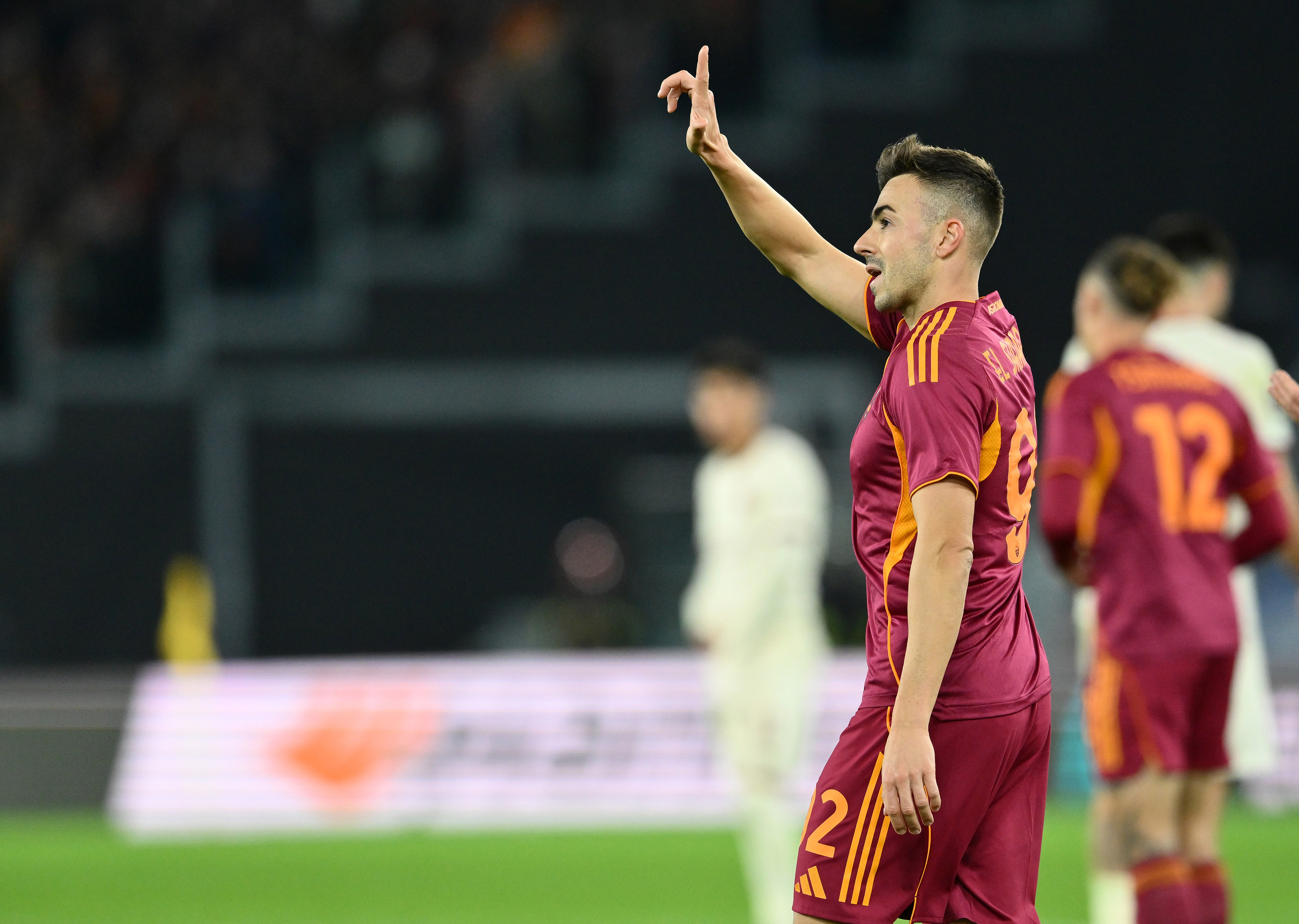 ستيفان الشعراوي لاعب روما يحتفل بتسجيله الهدف الثاني في شباك ميتيلاند ضمن منافسات الدوري الأوروبي لكرة القدم يوم الخميس - (Photo by Giuseppe Bellini/Getty Images)