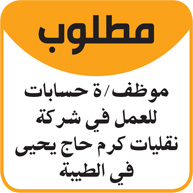 (ممول) مطلوب: موظفة/ة حسابات للعمل في شركة نقليات كرم حاج يحيى في الطيبة