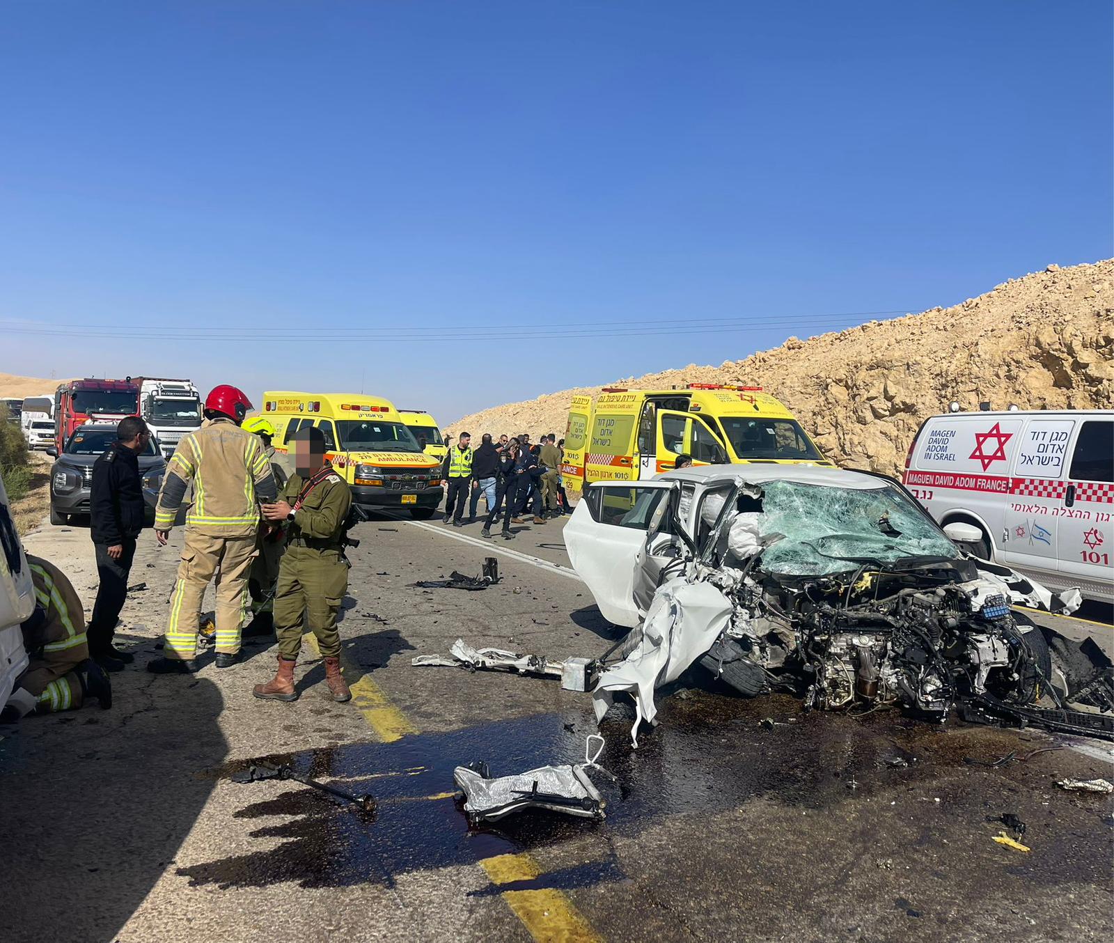 وجاء من الناطق بلسان نجمة داود الحمراء: " تلقّى مركز الإسعاف 101 التابع لنجمة داود الحمراء في منطقة النقب بلاغا عن حادث طرق بين مركبتين على شارع 25 قرب مفرق تسافيت.