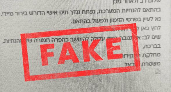 وقالت الشرطة في بيان صادر عنها، وصلت نسخة عنه لموقع بانيت وقناة هلا: " تلقت الشرطة في الفترة الأخيرة توجهات حول وصول رسائل بالبريد الالكتروني ورسائل نصية، عليها عنوان "بلاغ مهم بخصوص استدعاء شخصي للتحقيق"، وفيها رابط ينقل من يضغط عليه للاطلاع على تفاصيل الاستدعاء". وأضافت الشرطة في بيانها: " نود التوضيح ان هذه الرسالة مفبركة وغير صادرة عن شرطة إسرائيل، انما هي محاولة تضليل أو جمع معلومات، والرابط المرفق بها ينقل من يضغط عليه لصفحة مزيفة".