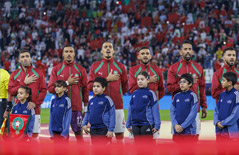 وطالب أبو الشامات بعدها بركلة جزاء بعد سقوطه في المنطقة جراء التحام مع مدافع مغربي لكن الحكم أمر باستمرار اللعب.