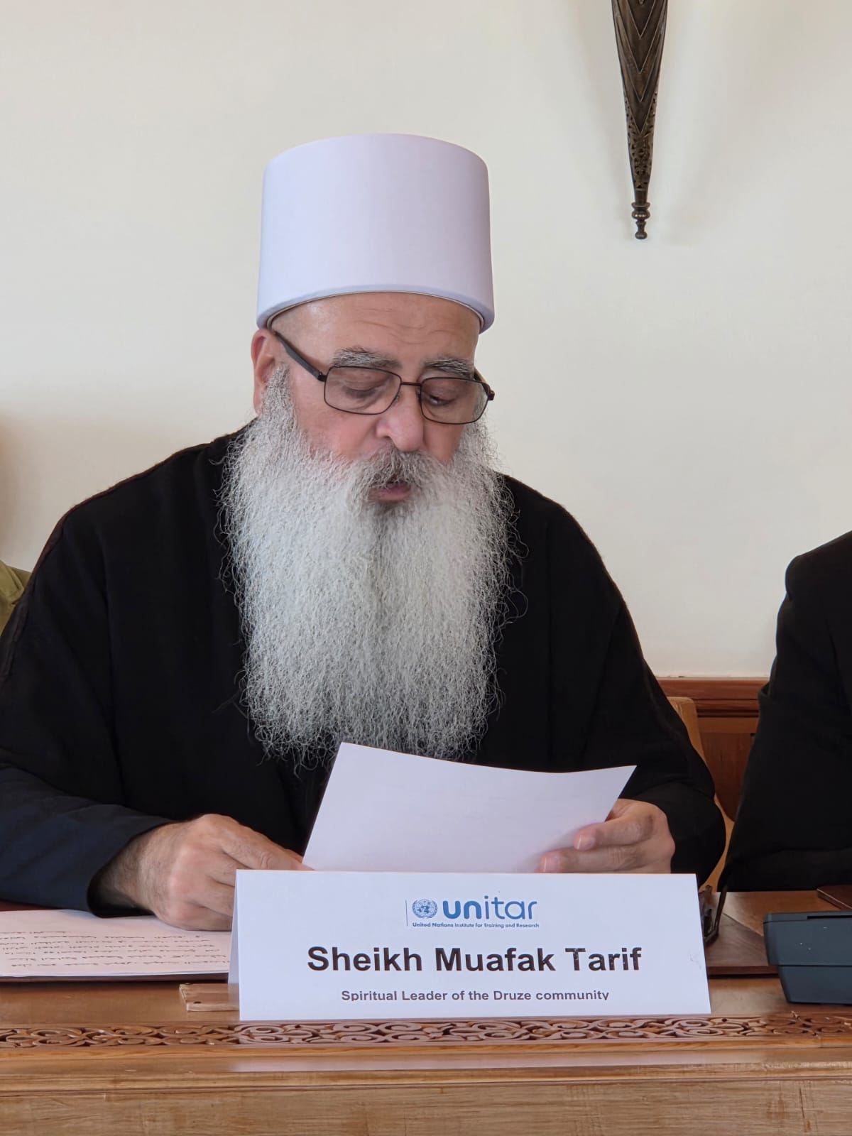 عقد سماحة الشَّيخ موفّق طريف، الرّئيس الرُّوحيّ للطّائفة الدُّرزيّة، سلسلة لقاءات في مقرّ الأُمم المتّحدة في جنيف، حيث عرض "ما آلت إليه الأوضاع في جبل الدُّروز والسُّويداء منذ تمُّوز الماضي،