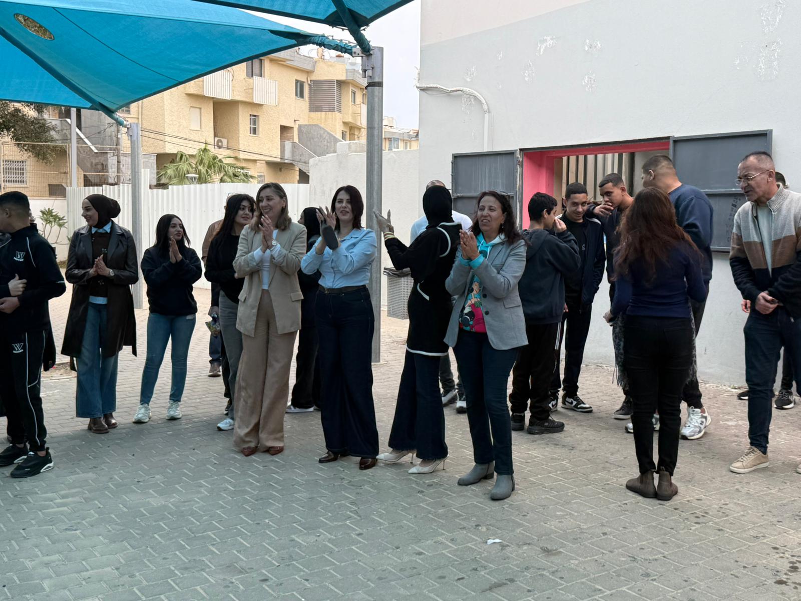 وتخلل اليوم لقاء مميز مع مديرة مركز الفنار في عكا، السيدة ليلى حجوج جمل، التي تحدثت عن أهمية دور الجمعية في مرافقة الطلاب الذين هم بحاجة إلى رعاية واهتمام، مؤكدةً أن العمل المشترك بين المدرسة والمؤسسات المجتمعية يشكل شبكة أمان حقيقية لشباب المدينة.