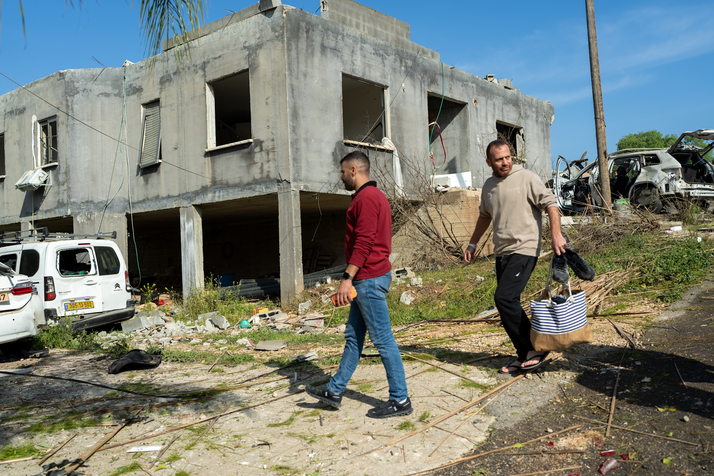والاطمئنان على أحبائهم وسط مشهد منازل محطمة وشرفات منهارة ونوافذ متطايرة.