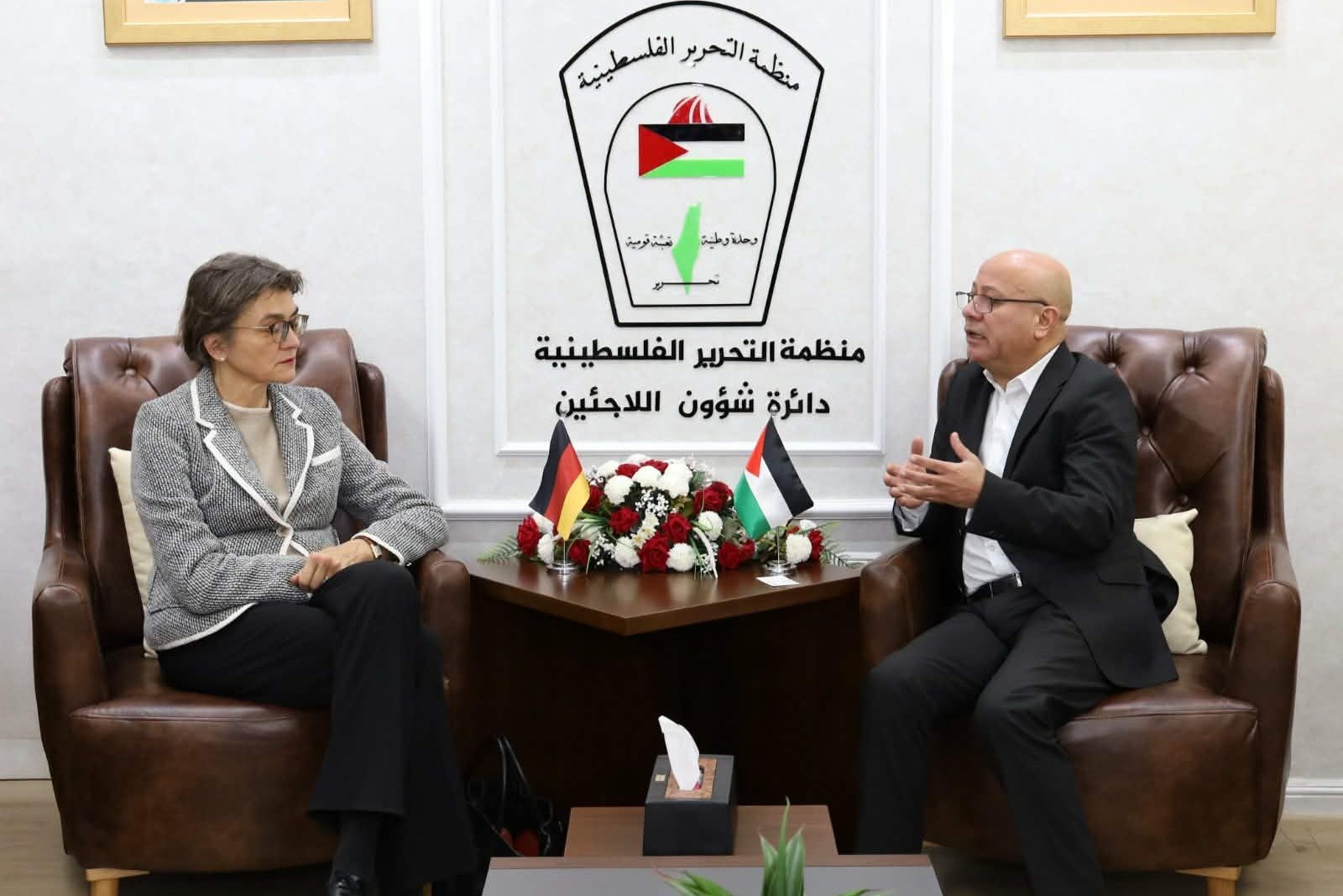 بحث عضو اللجنة التنفيذية لمنظمة التحرير الفلسطينية، رئيس دائرة شؤون اللاجئين أحمد أبو هولي، مع رئيسة الممثلية الألمانية لدى فلسطين السفيرة أنكه شليم، "آخر المستجدات السياسية والميدانية المتعلقة بقضية اللاجئين،