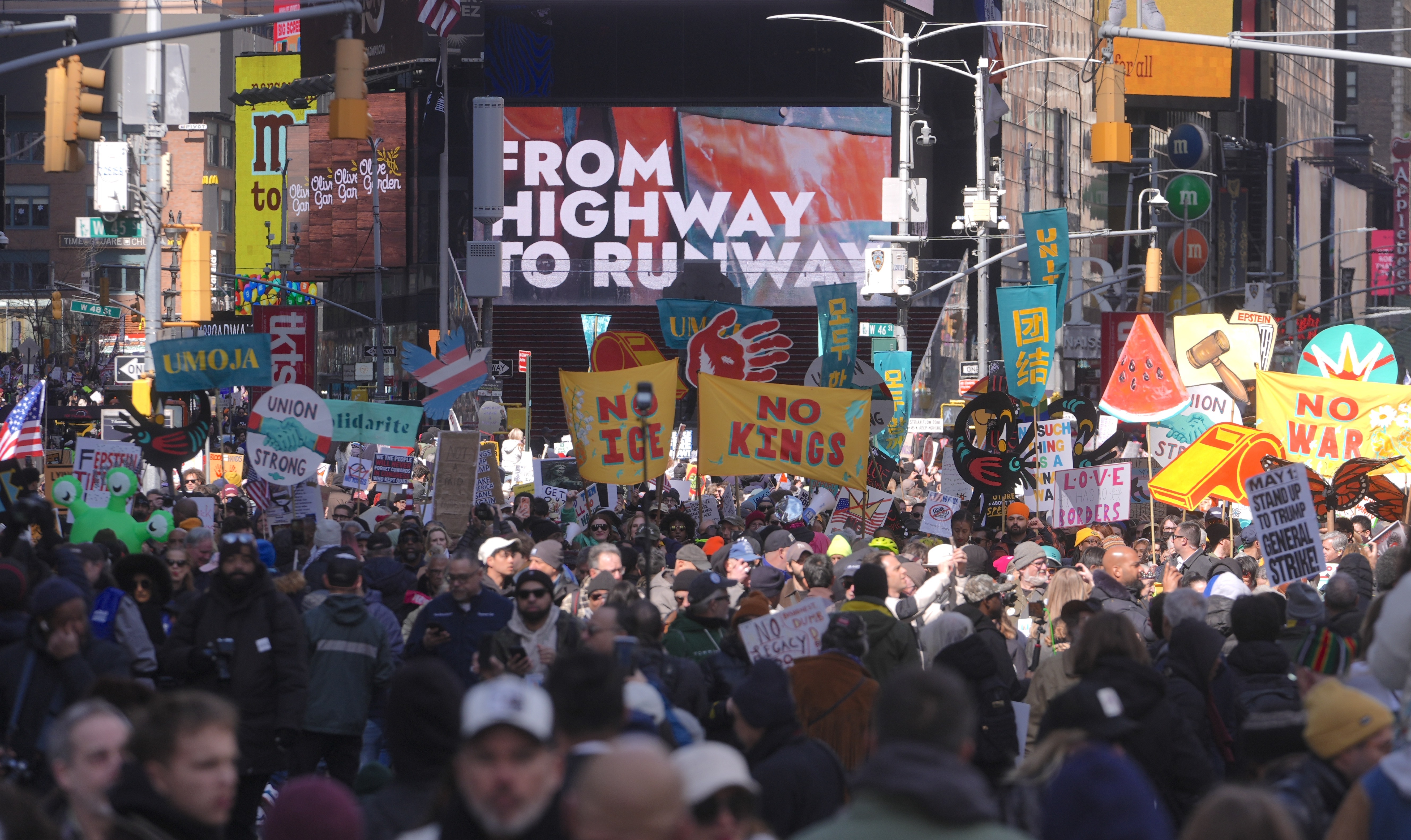 مسيرات مناهضة لترامب بآلاف المدن الأمريكية ضمن حملة ‘لا ملوك‘